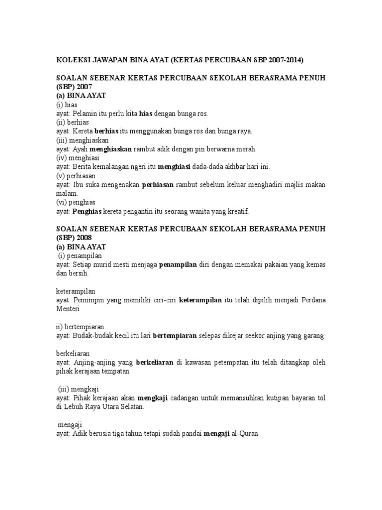 Koleksi Jawapan Bina Ayat Bahasa Malaysia Spm Pdf